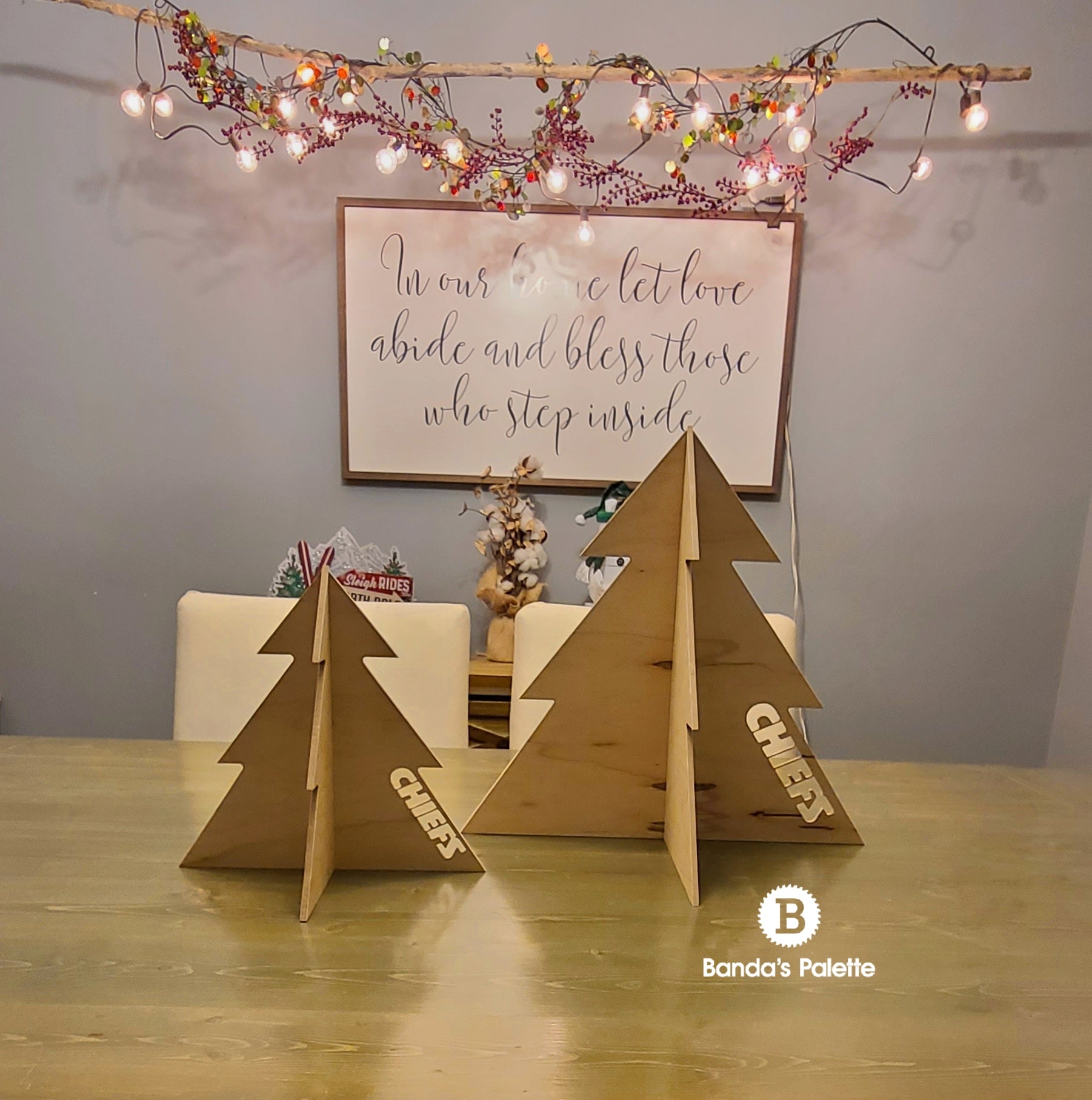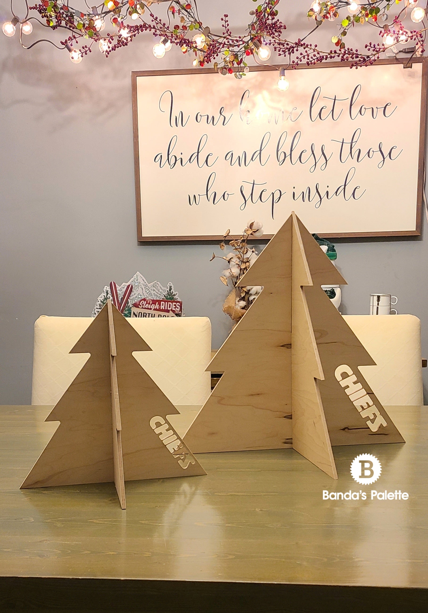 Personalized Christmas Tree Table Topper, Wooden Tree with Lights, Holiday Tree, KC, Kansas City, Chiefs, Sports Tree
