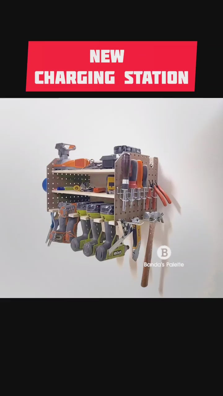 Customizable Charging Station for tools, Unique gift for men, Gift for Dad, Cordless Tool Charging Station, Father's Day, Peg Sides