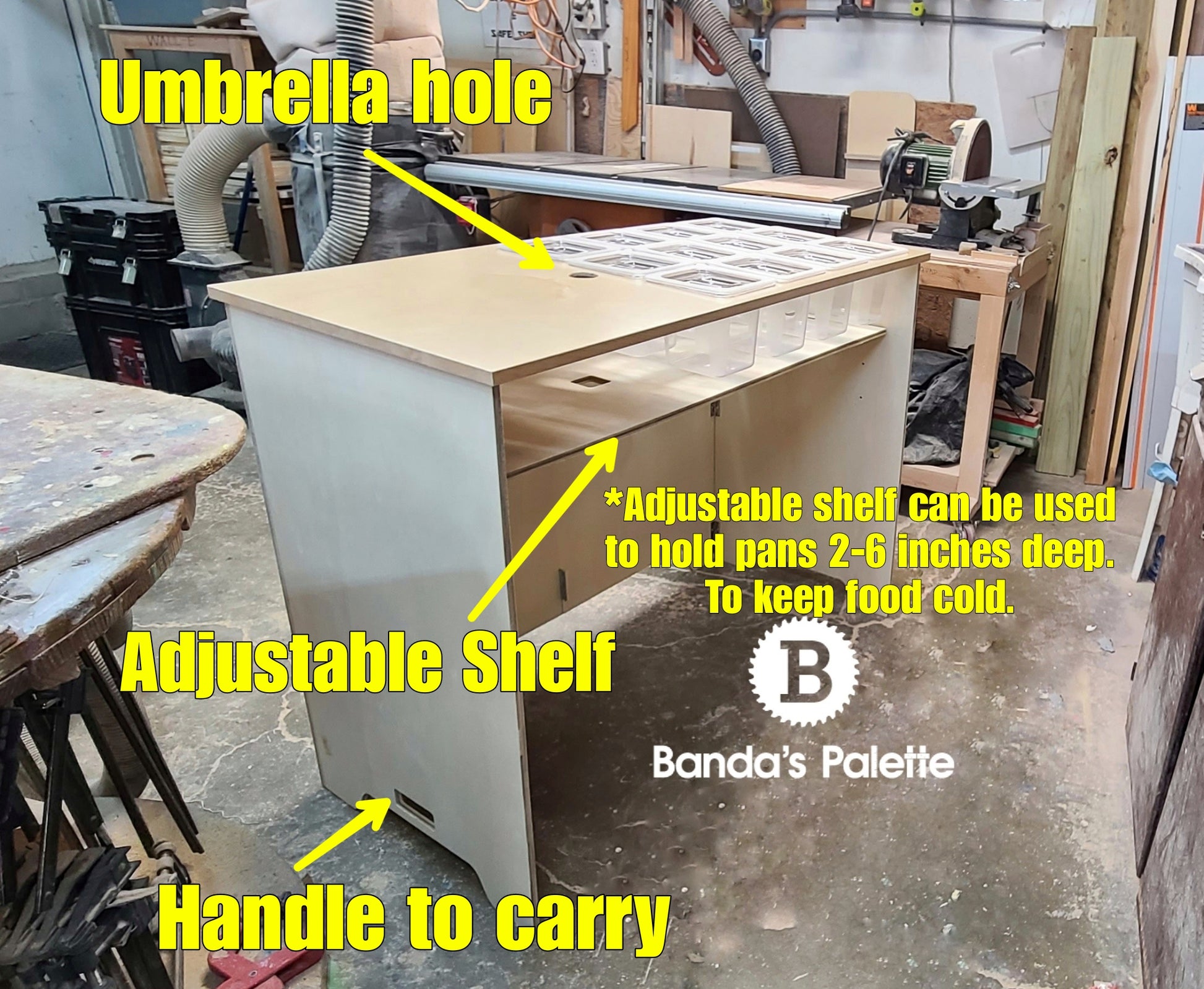 Need a more simple cart? See our foldable https://www.bandaspalette.com/products/foldable-charcuterie-cart-customizable-vendor-cart-portable-snack-cart-tradeshow-cart-dessert-cart-wedding-bar-company-events-cart-business-baby-showers-birthday-parties